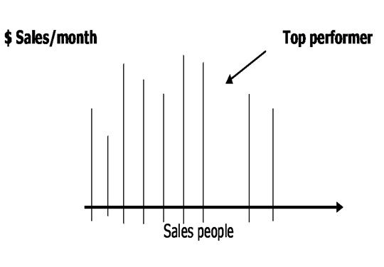 For example, if you take group of sales people and plot sales made per person over a period and compare performance you will generally find one exceptional performer.